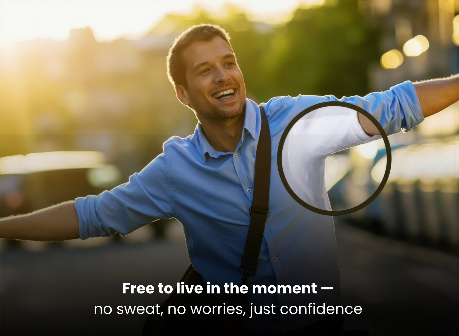 • More confidence → Focus on what matters instead of worrying about sweat marks.