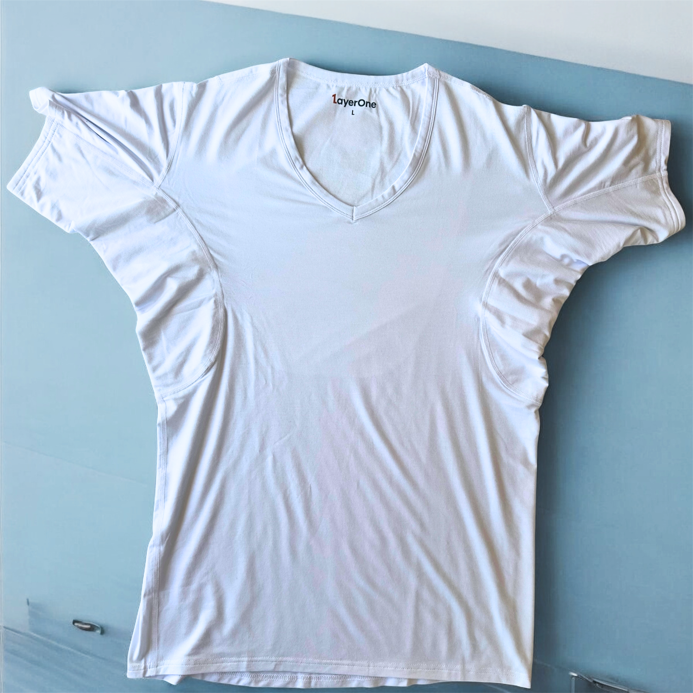 That’s why LayerOne goes further. With dual sweat-blocking panels under the arms and across the upper back, you get: